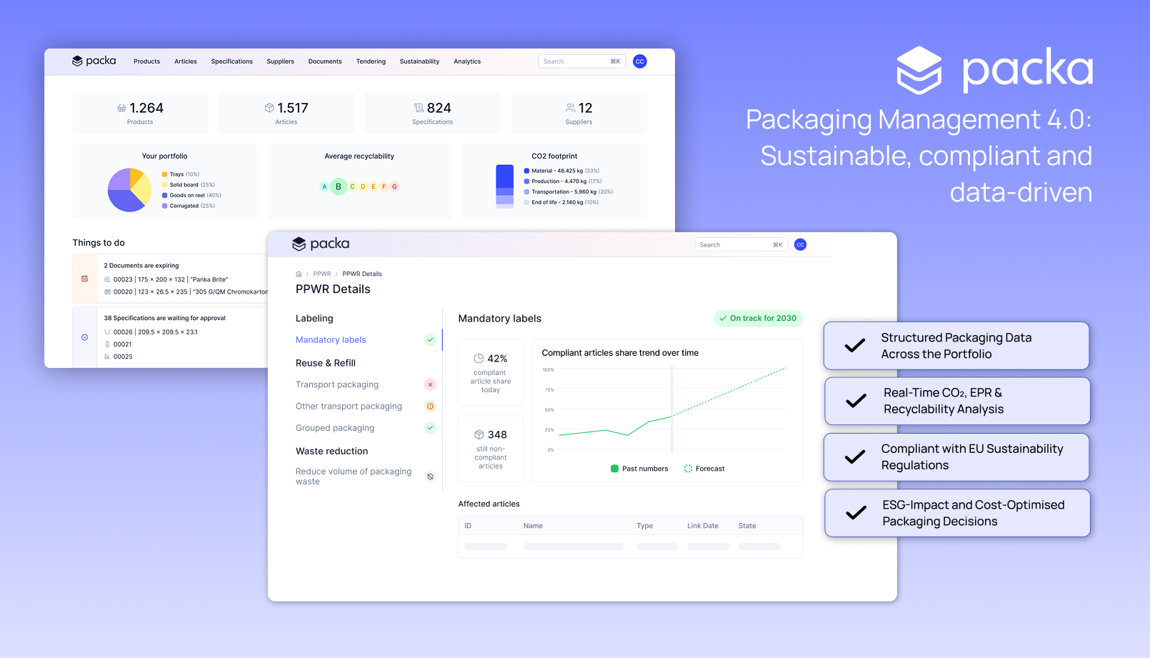 Want to understand in more detail how an intelligent packaging management tool digitizes packaging processes? Read our article “Packa: the all-in-one software for efficient packaging management.”